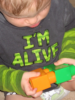 Colton and Ethan are trucks, wheels, legos, & blocks kinda boys. Hunter is ALL girl, all the time-makeup, cooking, cleaning, and most recently playing with dolls. And when I say playing with dolls, I do not mean playing with one doll whose in the playroom and another who is upstairs in the loft. Oh no...I mean, she is acting out what she knows. One mommy, multiple babies. I actually have no doubt that she would add a third baby to that mix if we had another one. But we don’t. We only have 2 dolls. But let me tell you how freakin adorable it is to watch her “mother” her 2 babies. She pats their heads, brushes their hair, claps their hands together, kisses them, carries them around and feeds them their bottles while saying “Num, num, num.”